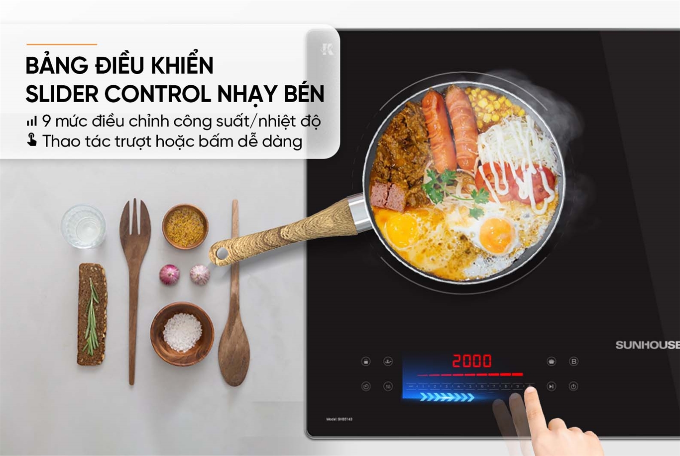 Bếp đôi điện từ SUNHOUSE SHB5143 được trang bị bảng điều khiển Slider Control với 9 mức nhiệt từ thấp đến cao. Chỉ bằng thao tác kéo trượt nhẹ nhàng trên bề mặt điều khiển, bạn có thể điều chỉnh độ tăng giảm của nhiệt độ/công suất một cách dễ dàng.
