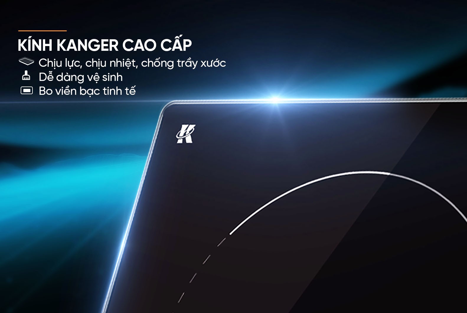 Mặt bếp được thiết kế trên nền chất liệu Kanger cao cấp, đặc trưng bởi hệ số giãn nở rất thấp và khả năng chịu nhiệt lên tới 700℃. Chất liệu có độ cứng cao giúp hạn chế ảnh hưởng do va đập trong quá trình nấu nướng. Điểm nhấn bo viền kim loại trên nền kính màu đen nguyên khối không chỉ giúp gia tăng độ bền của sản phẩm mà còn góp phần nâng tầm thẩm mỹ cho căn bếp của bạn.