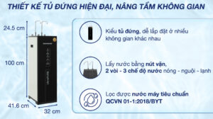 – Máy lọc nước có màu đen trắng cùng thiết kế tủ đứng gọn nhẹ, phù hợp với nhiều không gian nội thất.