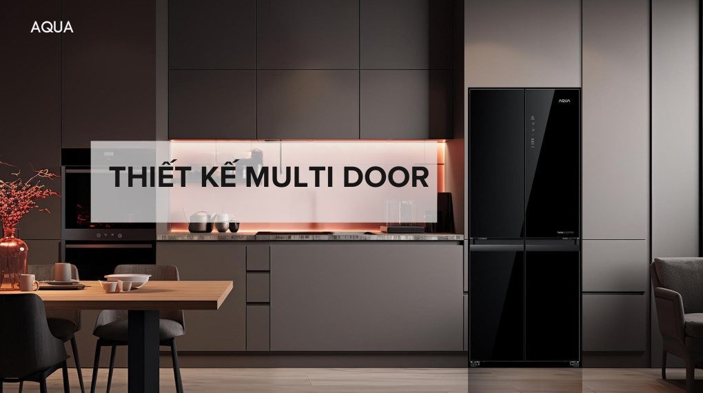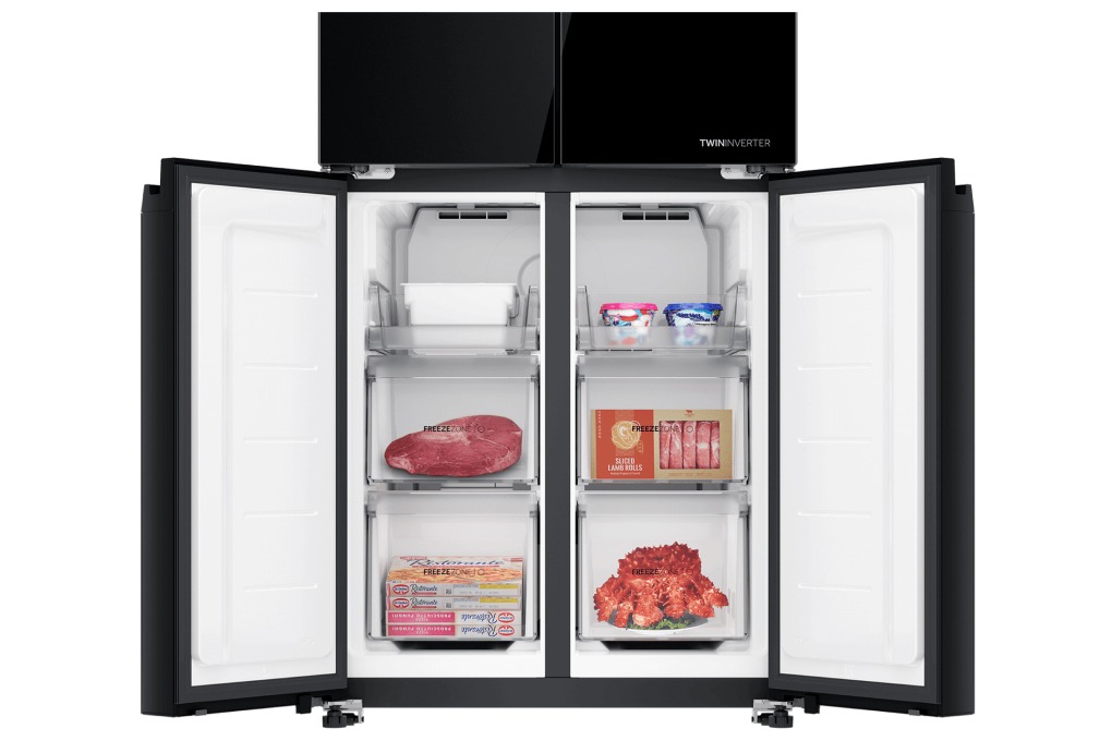 – Cửa tủ lạnh được thiết kế với mặt kính màu đen chủ đạo, mang lại vẻ hiện đại, sang trọng cho không gian bếp. Bề mặt này giúp việc vệ sinh tủ dễ dàng, chống trầy xước và giữ cho tủ lạnh luôn sáng bóng và mới mẻ.
