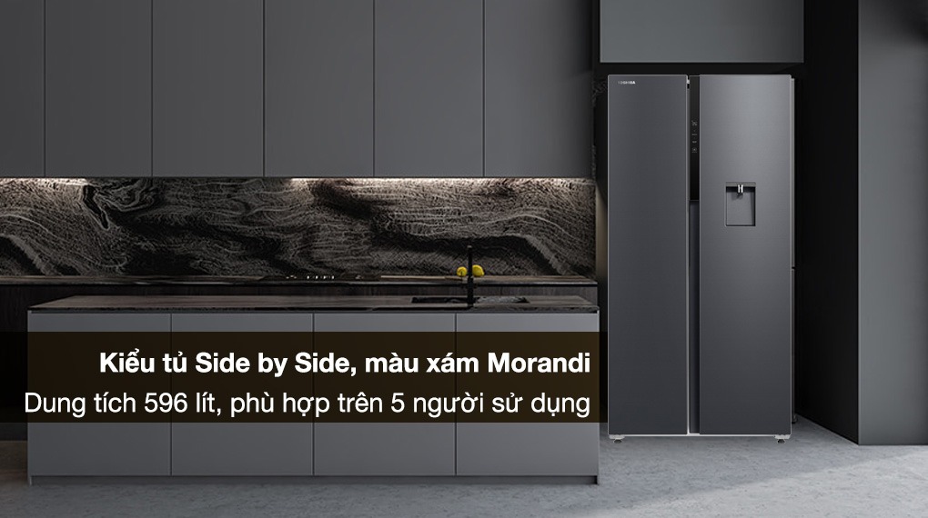 – Với gam màu xám Morandi và sở hữu kiểu thiết kế sang trọng, mẫu tủ lạnh Toshiba này phù hợp cho mọi vị trí bên trong không gian phòng bếp hiện đại.